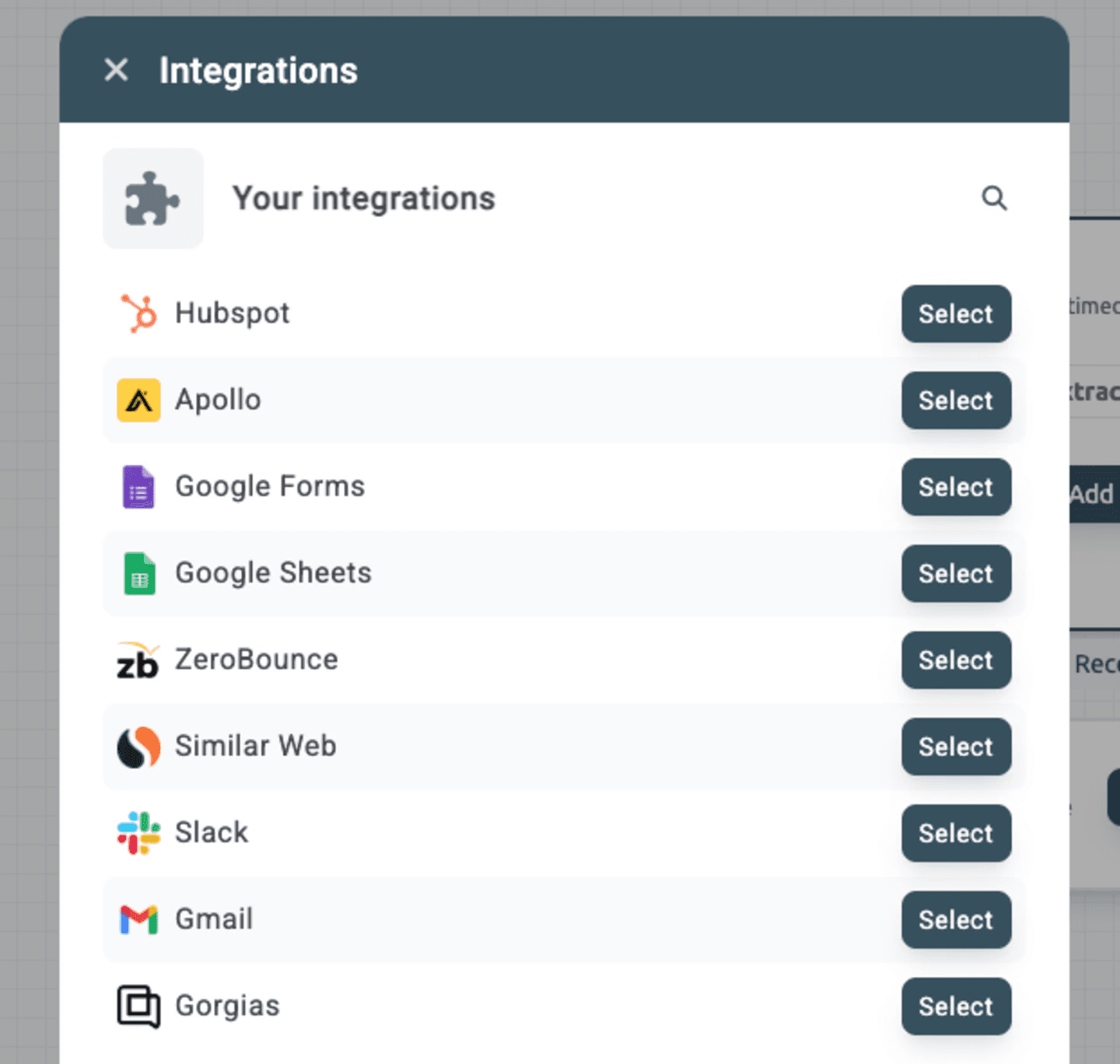 The second step is about bringing in any additional data you might need. This usually means fetching information from another platform using details from the trigger or input data (for example, a contact’s email or a company domain).