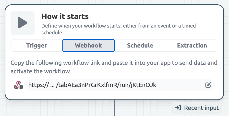 Activate when an external system sends an HTTP request to a workflow-specific webhook.