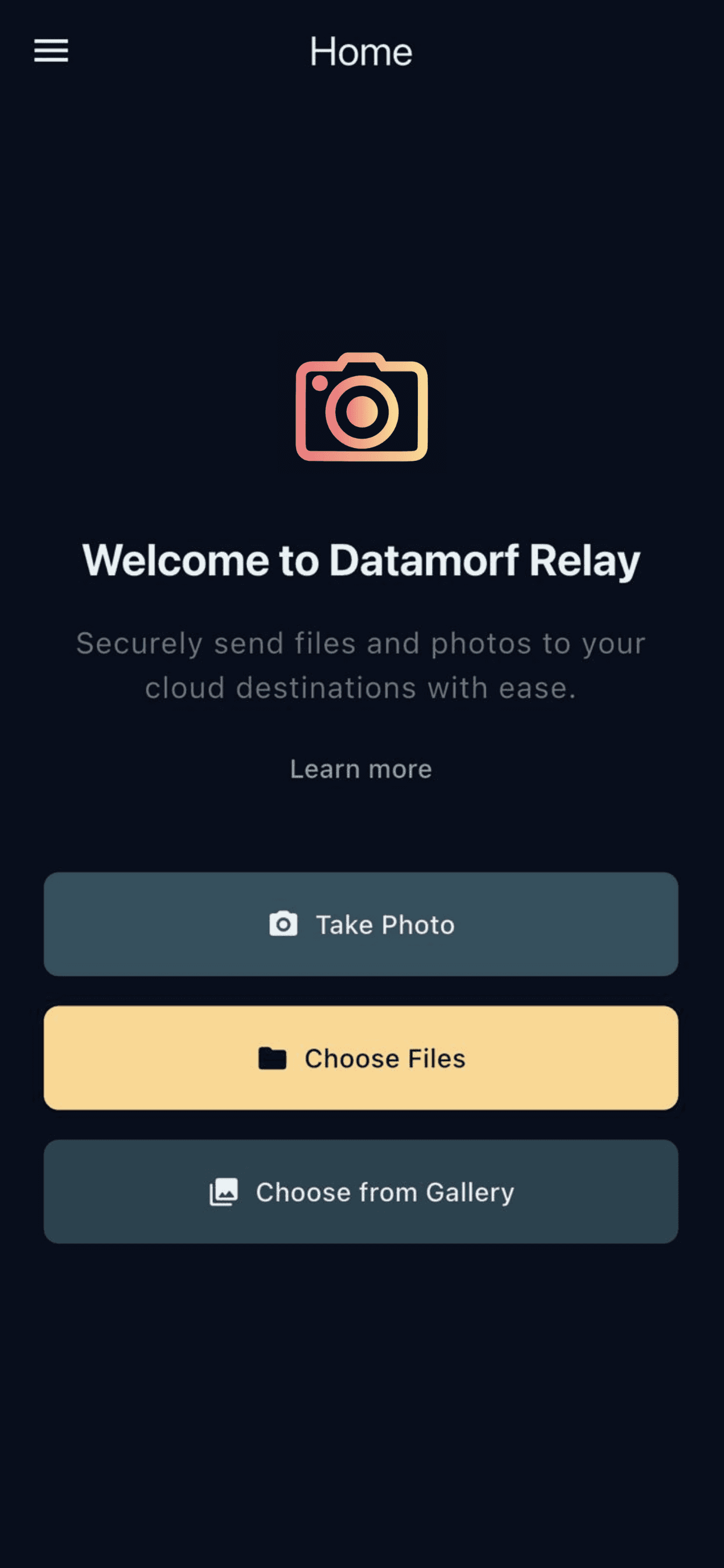 Use Datamorf Relay to capture invoices, receipts, or any document directly from your phone. No scans, no uploads, no emails, just a quick photo to start the process.
