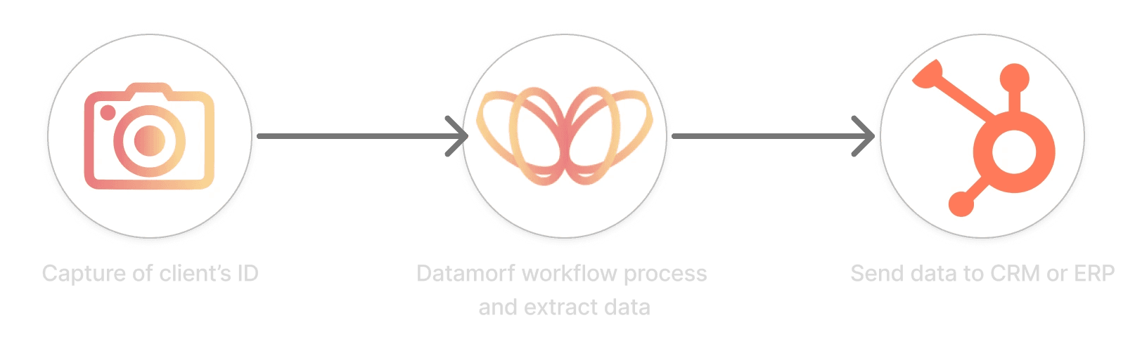 Businesses that need to register or verify client identities can use Datamorf Relay to capture photos of IDs at the point of interaction. Each document is sent to a Datamorf workflow, where identity data is extracted, validated, and formatted before being delivered to internal systems.
