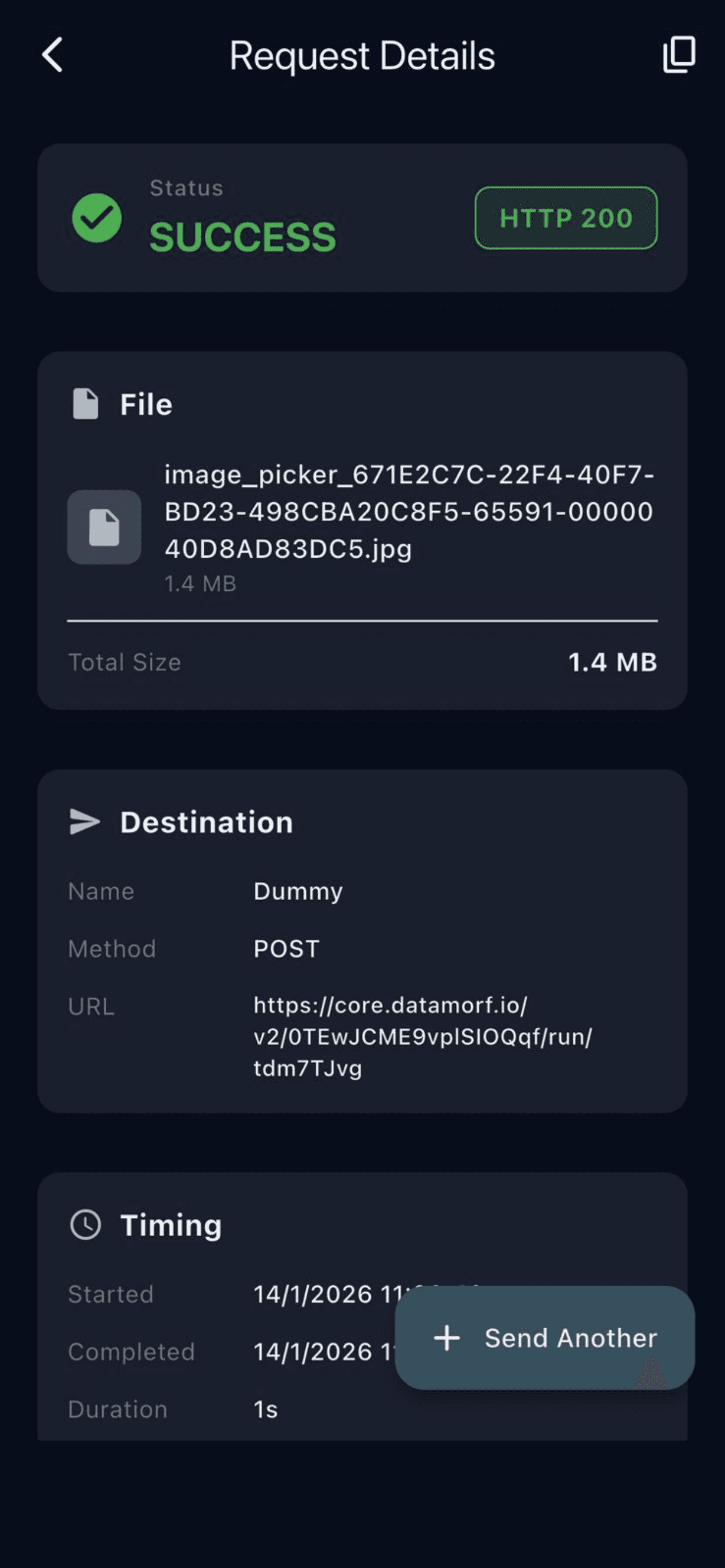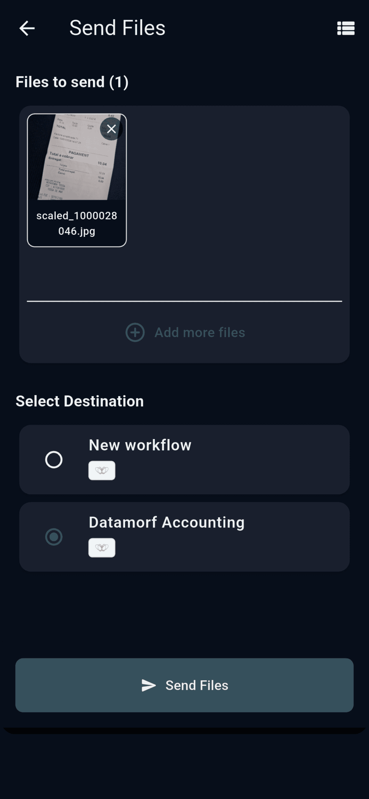 The captured document is instantly sent to a Datamorf workflow, where it becomes structured input ready for extraction, validation, and transformation.